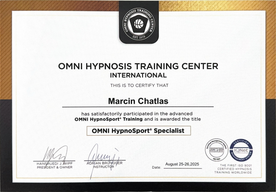 Twoje zaufanie jest dla mnie najważniejsze. Posiadam certyfikaty i licencje potwierdzające moje kwalifikacje w zakresie hipnozy i hipnoterapii.